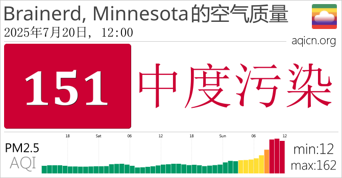 Brainerd, Minnesota, 美国的空气污染指数是中度污染