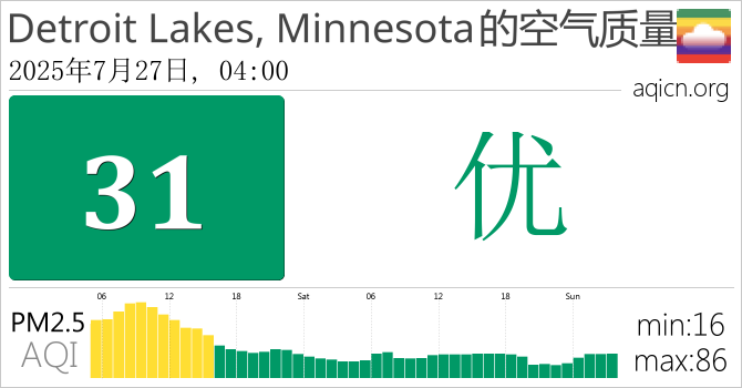 Detroit Lakes, Minnesota, 美国的空气污染指数是优