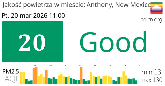 Jakość powietrza w mieście Anthony, New Mexico, Stany Zjednoczone jest Good