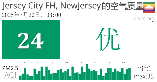 Jersey City FH, NewJersey, 美国的空气污染指数是优