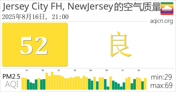 Jersey City FH, NewJersey, 美国的空气污染指数是良