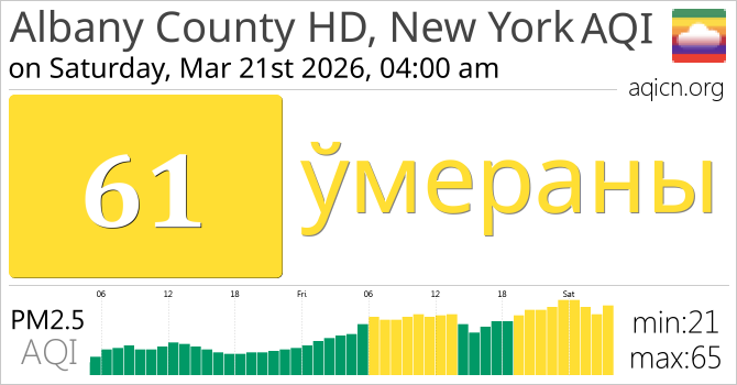 Якасць паветра ў Albany County HD, New York, USA складае ўмераны