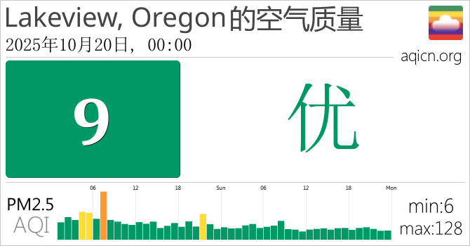 Lakeview, Oregon, 美国的空气污染指数是优