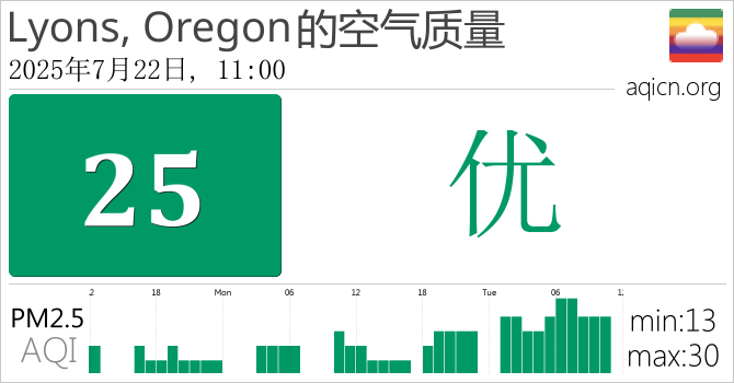 Lyons, Oregon, 美国的空气污染指数是优