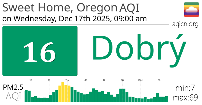 Kvalita ovzduší ve městě Sweet Home, Oregon, USA je Dobrý