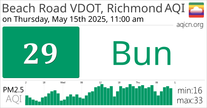 Calitatea aerului din Beach Road VDOT, Richmond, USA este Bun