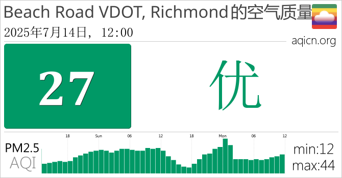 Beach Road VDOT, Richmond, 美国的空气污染指数是优