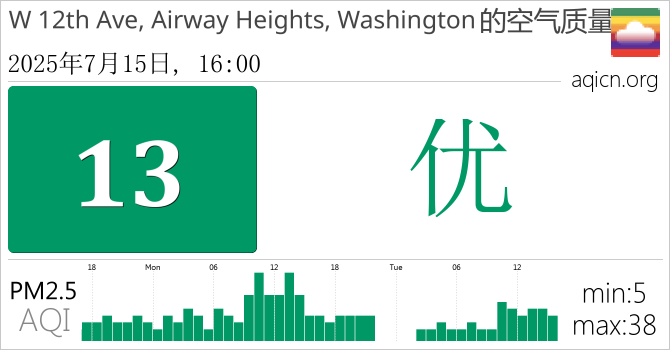 W 12th Ave, Airway Heights, Washington, 美国的空气污染指数是优