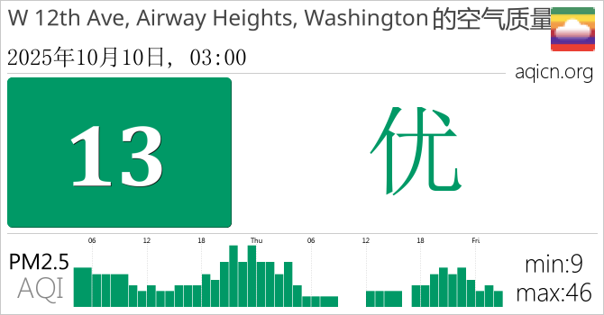 W 12th Ave, Airway Heights, Washington, 美国的空气污染指数是优