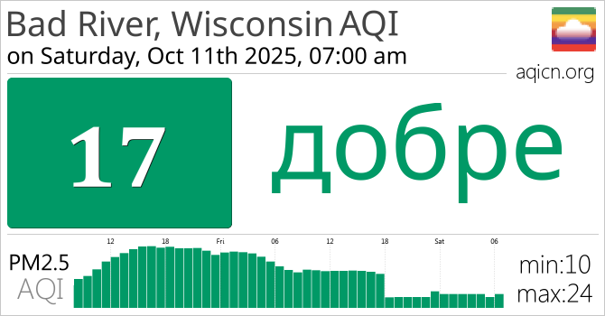 Качеството на въздуха в Bad River, Wisconsin, USA е добре
