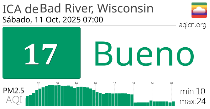 La calidad del aire de Bad River, Wisconsin, Estados Unidos es Bueno