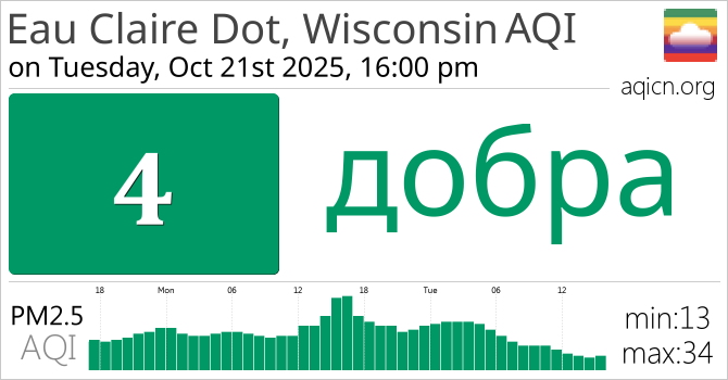 Якасць паветра ў Eau Claire Dot, Wisconsin, USA складае добра