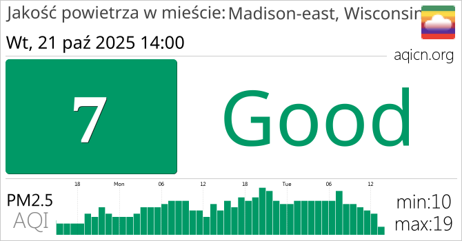 Jakość powietrza w mieście Madison-east, Wisconsin, Stany Zjednoczone jest Good
