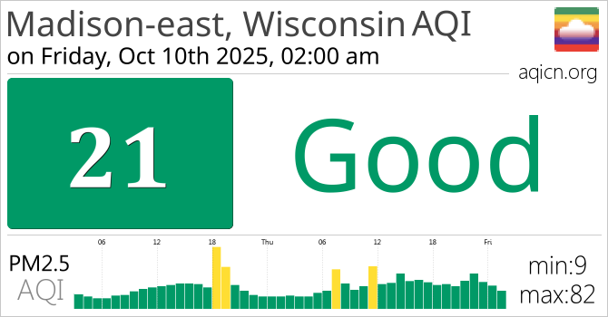 Madison-east, Wisconsin, USA Air Quality is Good