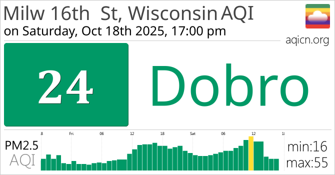 Kvalitet zraka za Milw 16th St, Wisconsin, USA je Dobro