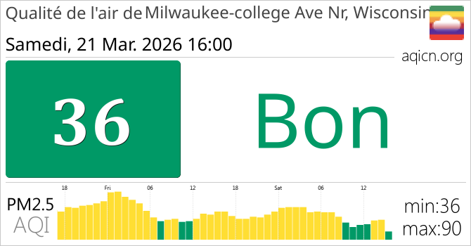 La qualité de l'air à Milwaukee-college Ave Nr, Wisconsin, États-Unis est Bon