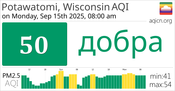 Якасць паветра ў Potawatomi, Wisconsin, USA складае добра