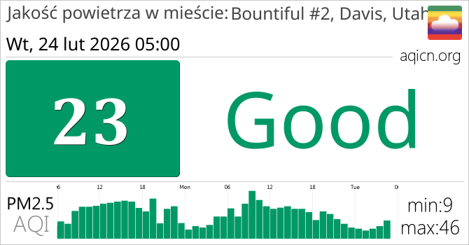 Jakość powietrza w mieście Bountiful #2, Davis, Utah, Utah jest Good
