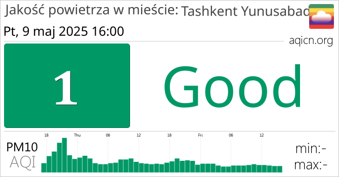 Jakość powietrza w mieście Tashkent Yunusabad, Uzbekistan jest Good