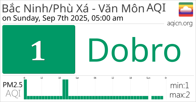 Kvalitet zraka za Bắc Ninh/Phù Xá - Văn Môn, Vietnam je Dobro