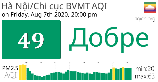 Якість повітря в місті Hà Nội/Chi cục BVMT, Vietnam становить Добре