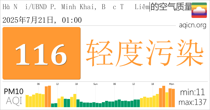 Hà Nội/UBND P. Minh Khai, Bắc Từ Liêm, 越南的空气污染指数是轻度污染