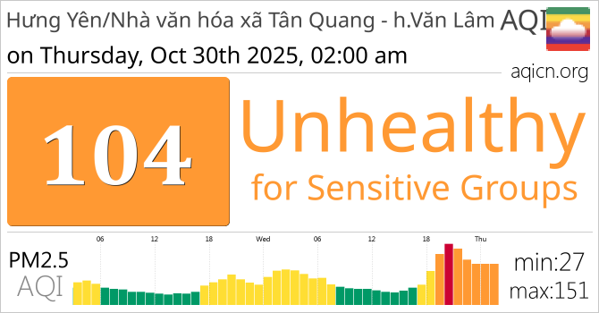 Hưng Yên/Nhà văn hóa xã Tân Quang - h.Văn Lâm, Vietnam Air Quality is Unhealthy for Sensitive Groups