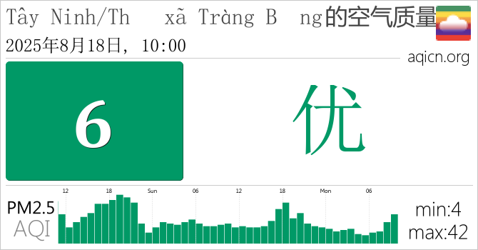Tây Ninh/Thị xã Tràng Bảng, 越南的空气污染指数是优