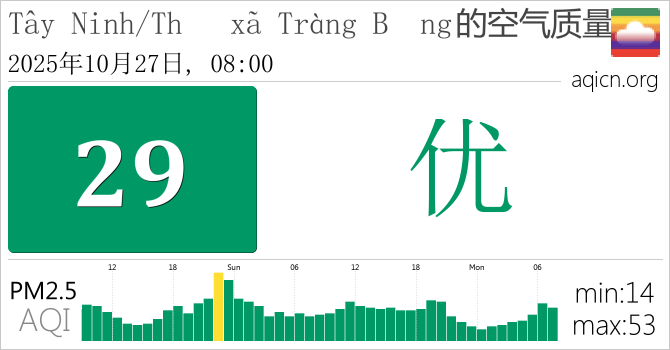 Tây Ninh/Thị xã Tràng Bảng, 越南的空气污染指数是优