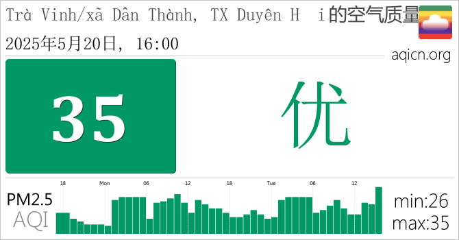 Trà Vinh/xã Dân Thành, TX Duyên Hải, 越南的空气污染指数是优